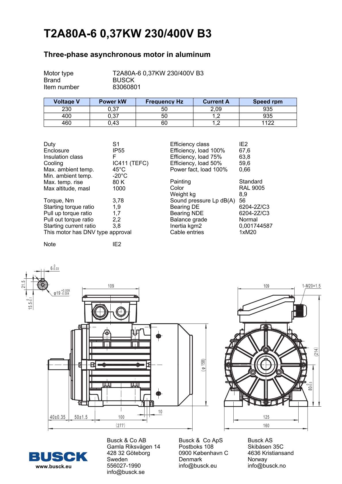 T2A80A-6 0,37KW 230/400V B3