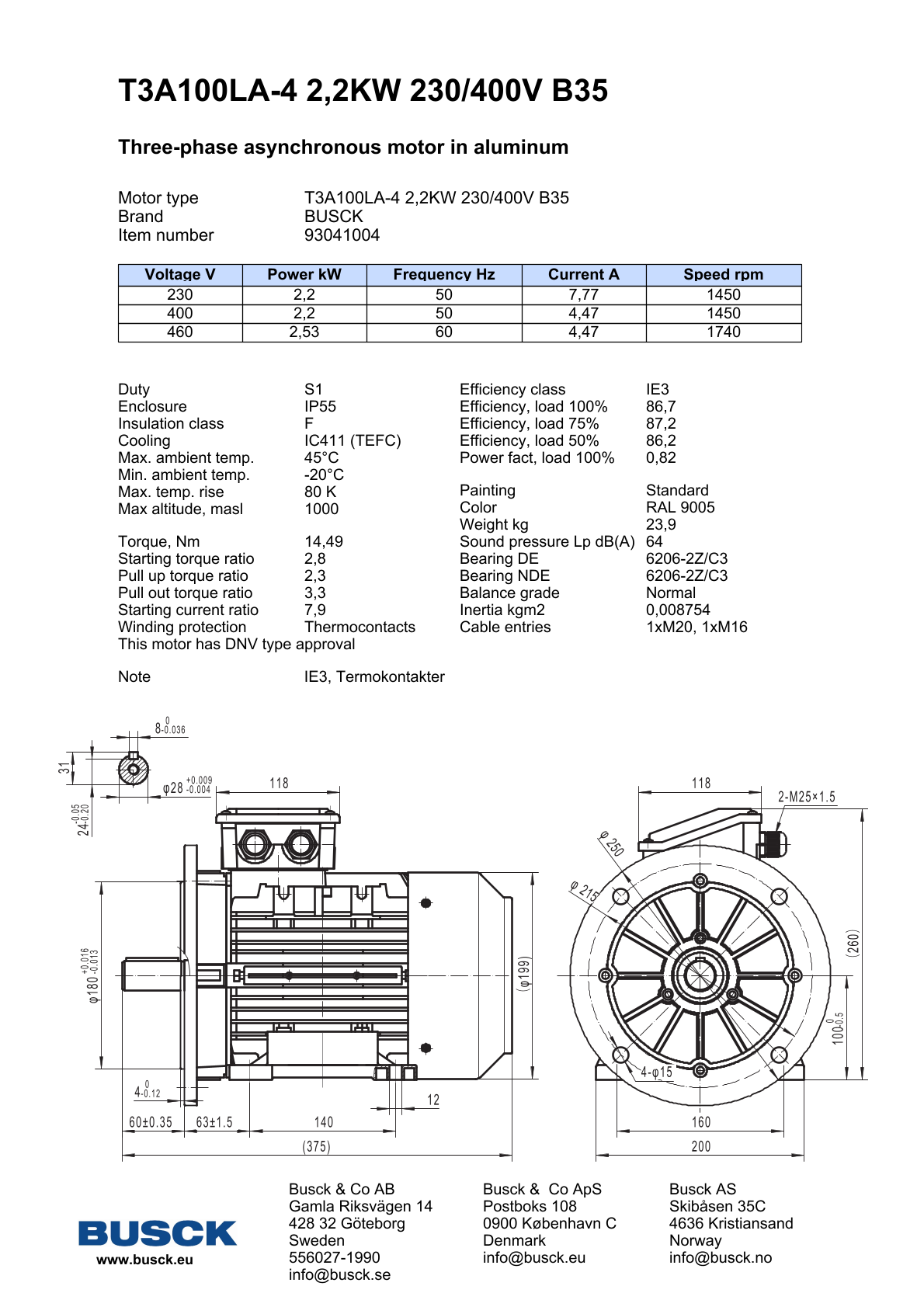T3A100LA-4 2,2KW 230/400V B35