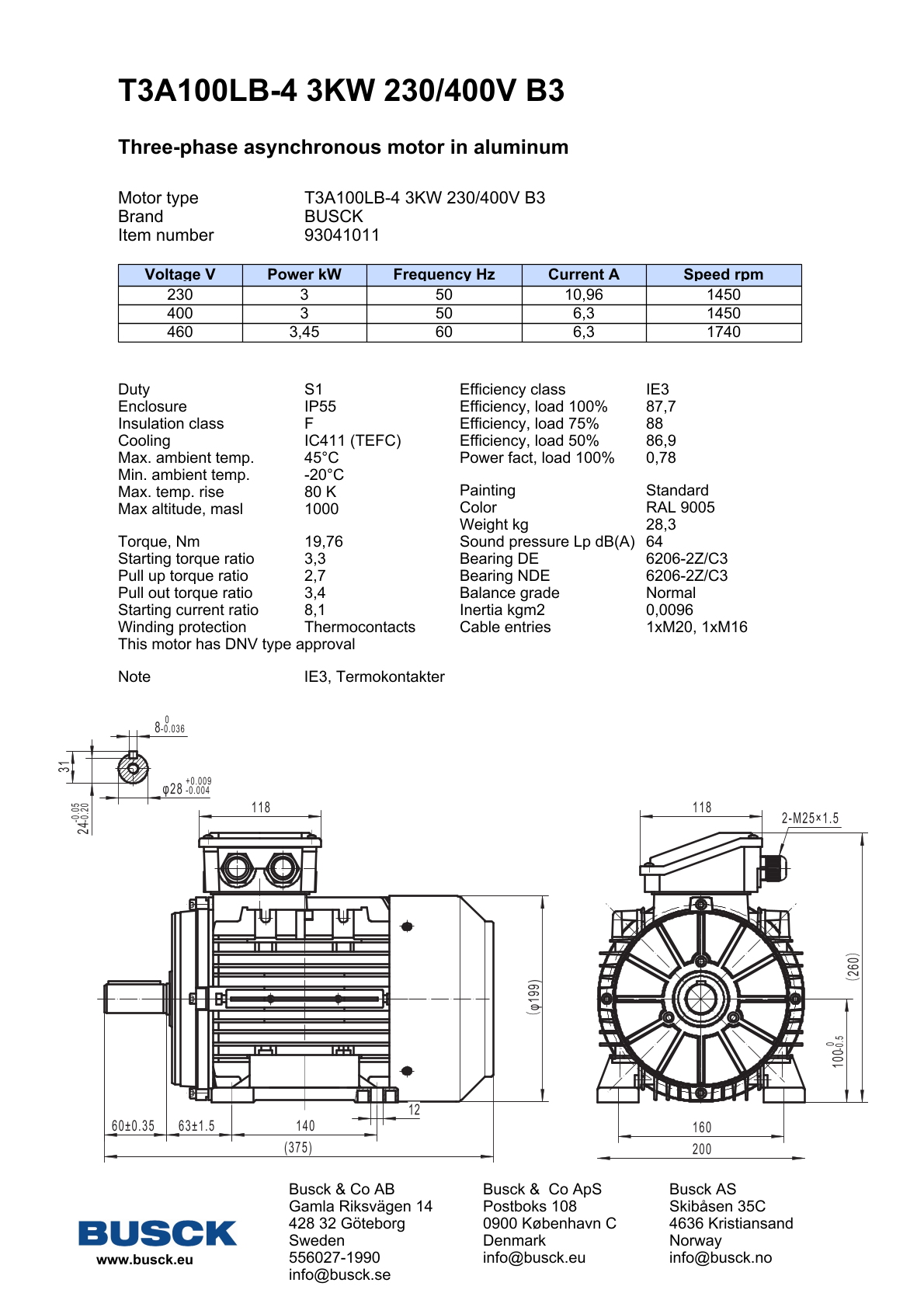 T3A100LB-4 3KW 230/400V B3