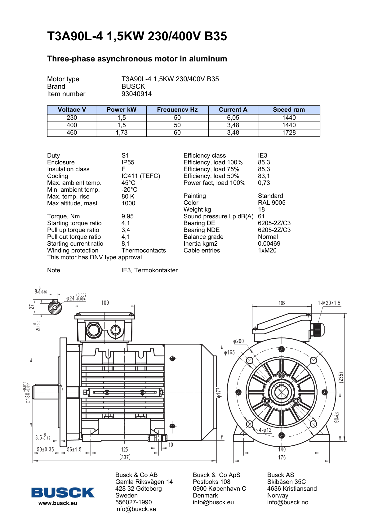 T3A90L-4 1,5KW 230/400V B35