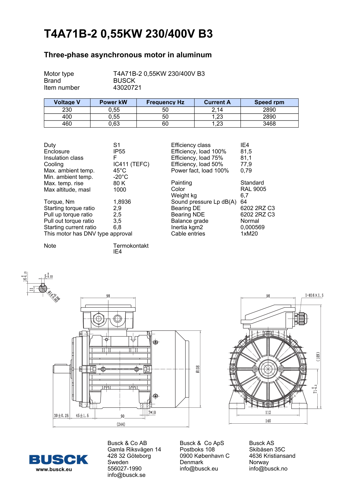 T4A71B-2 0,55KW 230/400V B3